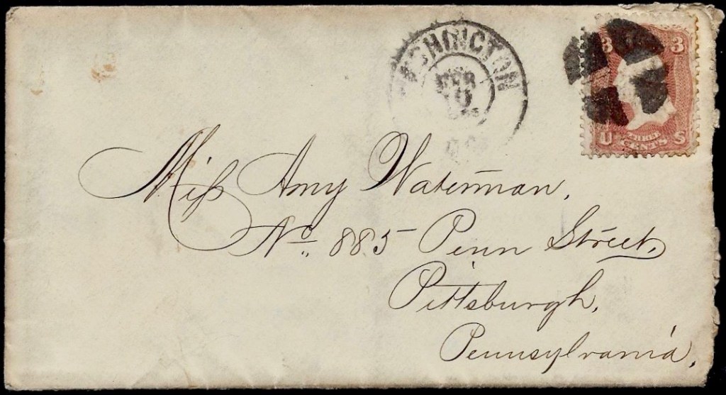 Addressed to Miss Amy Waterman, 885 Penn Street, Pittsburg, Pa.