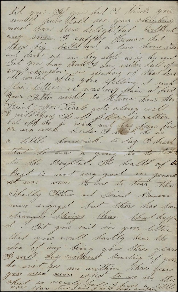 The following letters were written by Thomas Richard Petrie (1841-1923), the son of Robert Petrie (1808-1873) and Margaret Harter (1816-1906). He wrote all four of his letter to Gertrude Emily Sanders (1842-1924), his future wife.