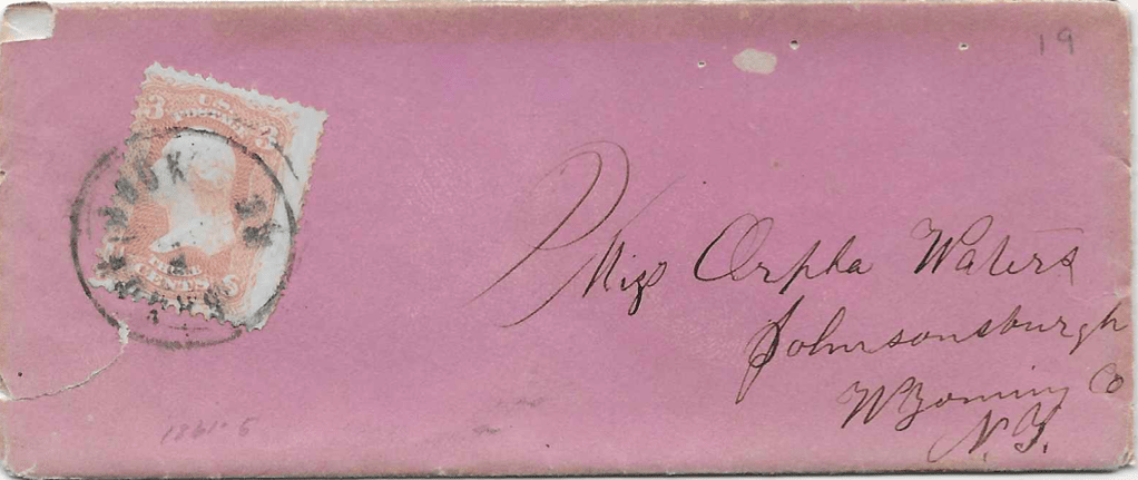 Addressed to Miss Orpha Waters, Johnsonsburgh, Wyoming county, New York