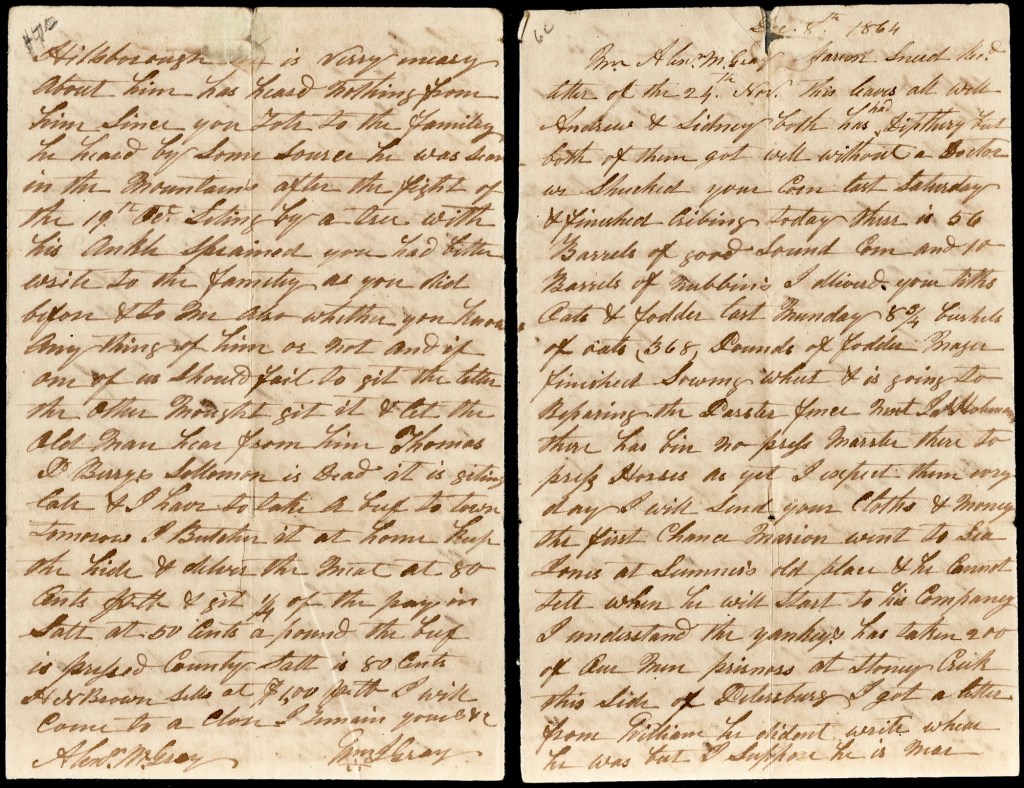 William wrote the letter to his younger brother, Alexander M. Gray (1819-1874) who was apparently in the Confederate service at the time.