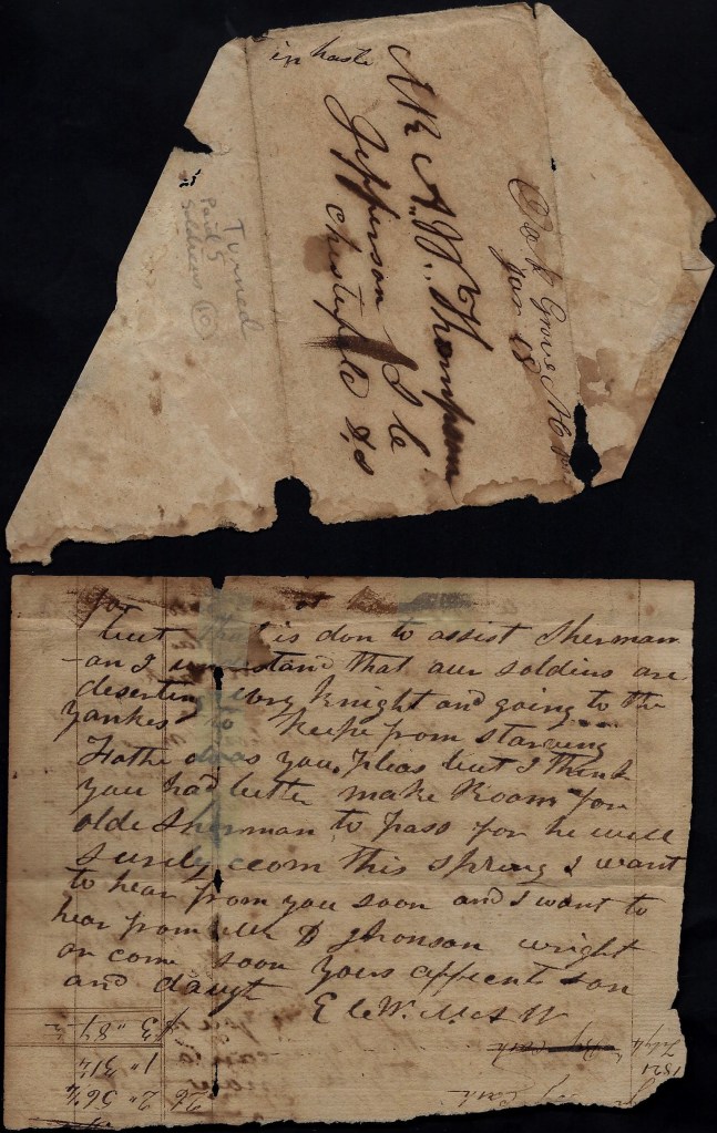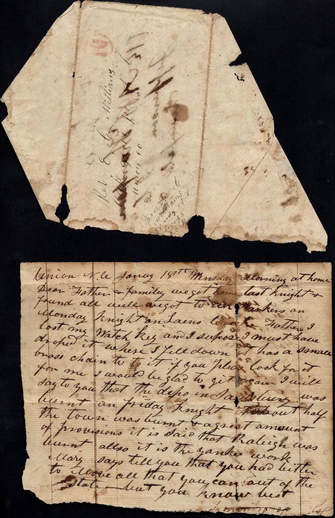 One of the best articles on the problems with deserters specifically in Randolph county can be found in a blog post by L. McKay Whatley (see Civilian Casualties of War, 1863) in which the author points out that since Asheboro had no local newspaper published during the war, “events were only known when residents wrote to other newspapers, in Fayetteville, Greensboro, or in Raleigh. Most events were never recorded in the news at the time they happened and many stories are virtually impossible to confirm. Such stories survived, if at all, as oral history.” This article contains a tale involving the Bray family who are also mentioned in the following letter.
