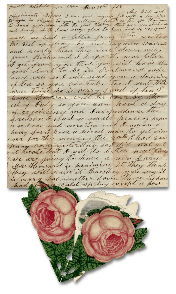 I hope the war will be over by the 1st of July so you can have a day of rejoicing and Independence. The reason I send so small a piece of paper is so I can send some more tea and I am in a hurry for I have a hired man to get dinner for this Monday, the 20th. I had company come yesterday so I did not get it wrote but I will do better next time.