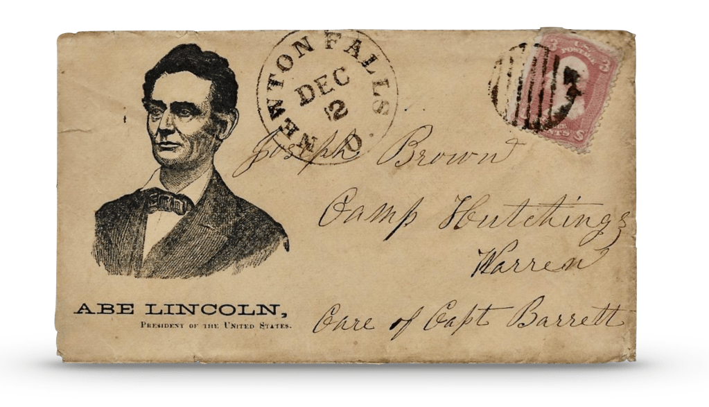 Addressed to Joseph Brown, Camp Hutchins, Warren, [Ohio], Care of Capt. Barrett Postmarked Newton Falls, Trumbull county, Ohio, December 2, 1861