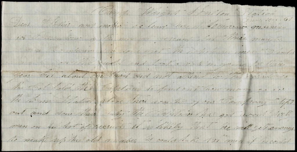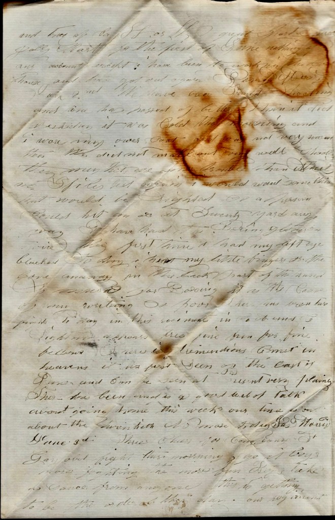 I went to the post office last night and put a letter in the box and came back to my quarters in the quartermaster’s office. They came to the station last night and I found father’s letter waiting for me dated the 14th…[letter largely unintelligible due to faded ink]