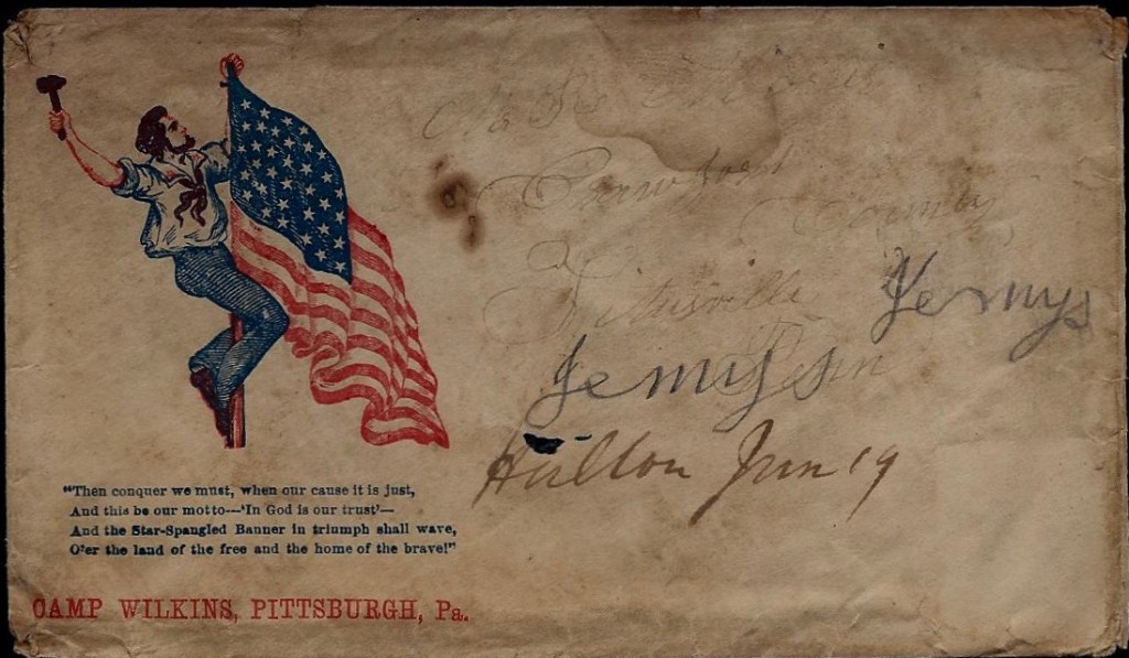 Direct to Private James Morris, Company F, Capt. Morgan. Col. McLane’s Regiment, Camp Wright. Hulton Station, Allegheny County, Pa.