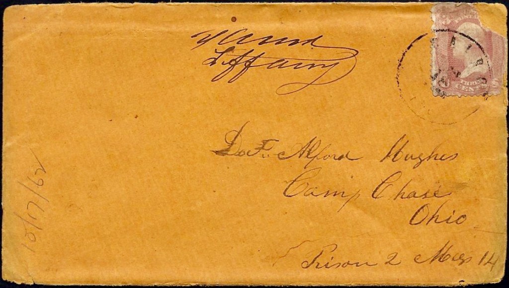 Addressed to Dr. Alfred Hughes, Columbus, Ohio, Care of D. B. Tiffany, Prison Post Master, Camp Chase No. 37