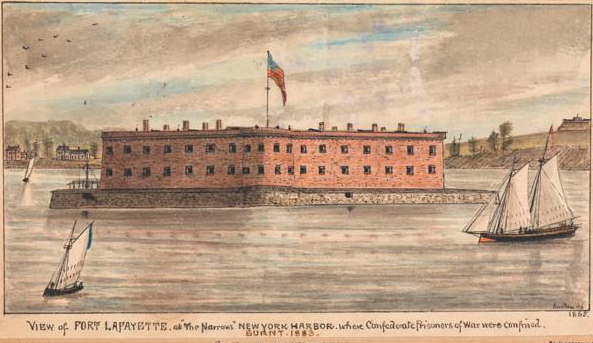 Long before the Civil War this fortress was renamed Fort Lafayette, in honor of the Marquis de Lafayette, the young French general who had aided the American cause in the Revolutionary War. By the second year of the Civil War, however, it would be hatefully referred to by many simply as “that American Bastille”. . .