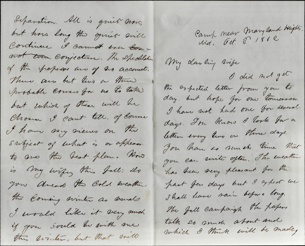 Camp near Maryland Heights, Maryland October 3d 1862
