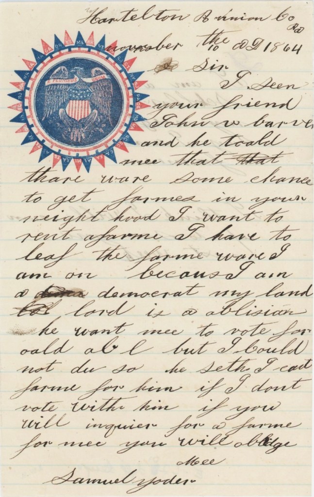 What pity the Pike county [Peace] nuts can’t inveigle a lot of poor Devil’s into the Army in their place and let their worships remain at home. They may screw and squirm as much as they please, but their time is coming certain as the 7 year itch, and that never fails once in a lifetime nor never will.