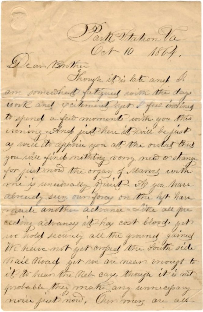 Park Station, Virginia October 10, 1864