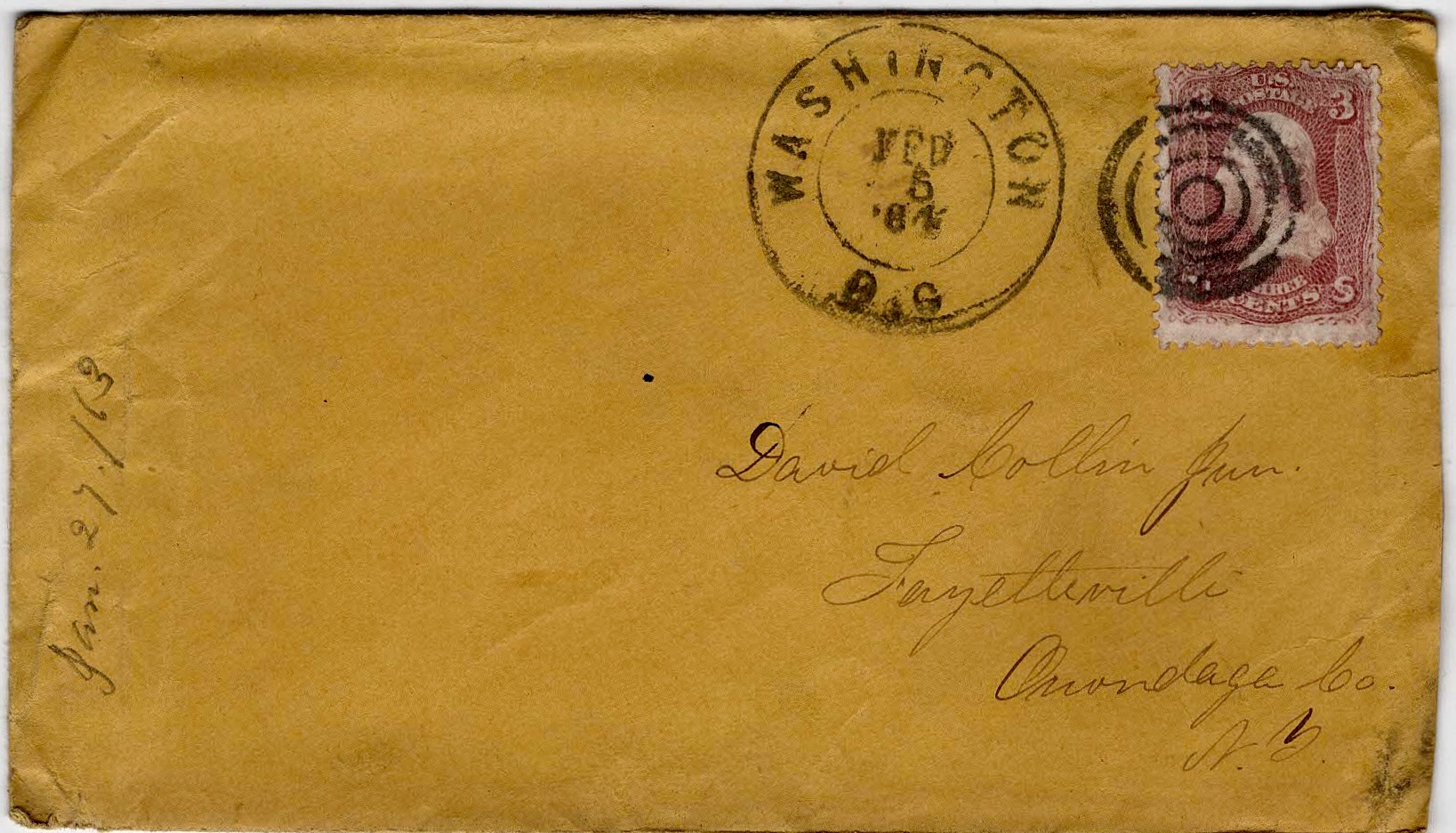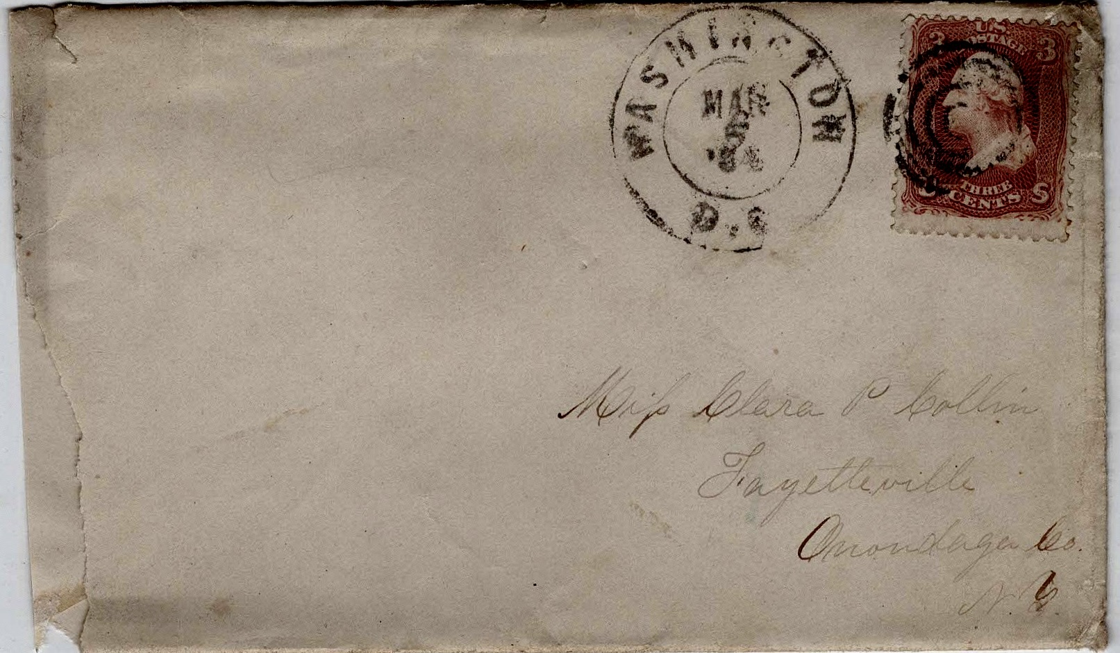 Addressed to Miss Alice Avery, Genoa, Cayuga county, New York