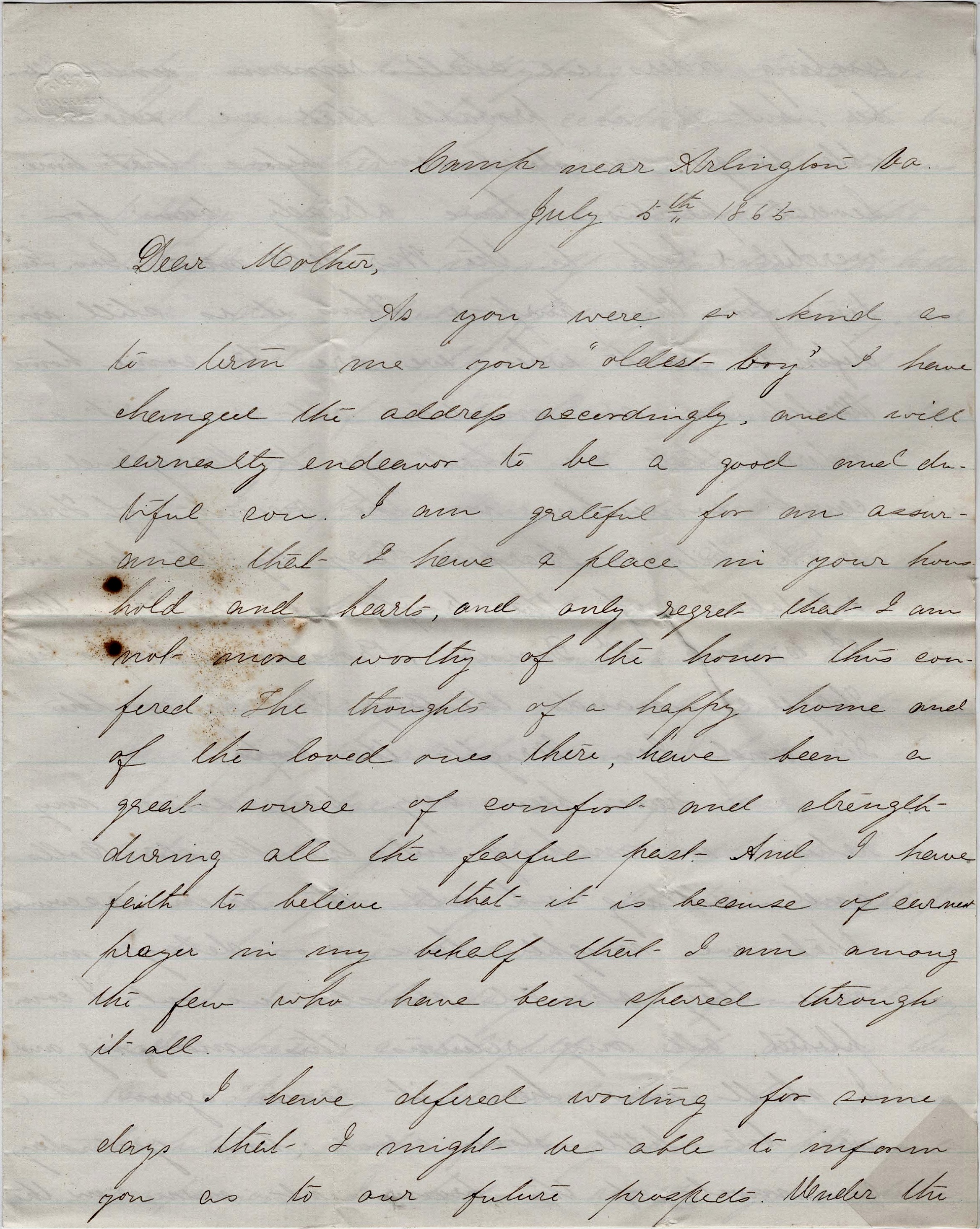Camp near Arlington, Virginia July 5, 1865