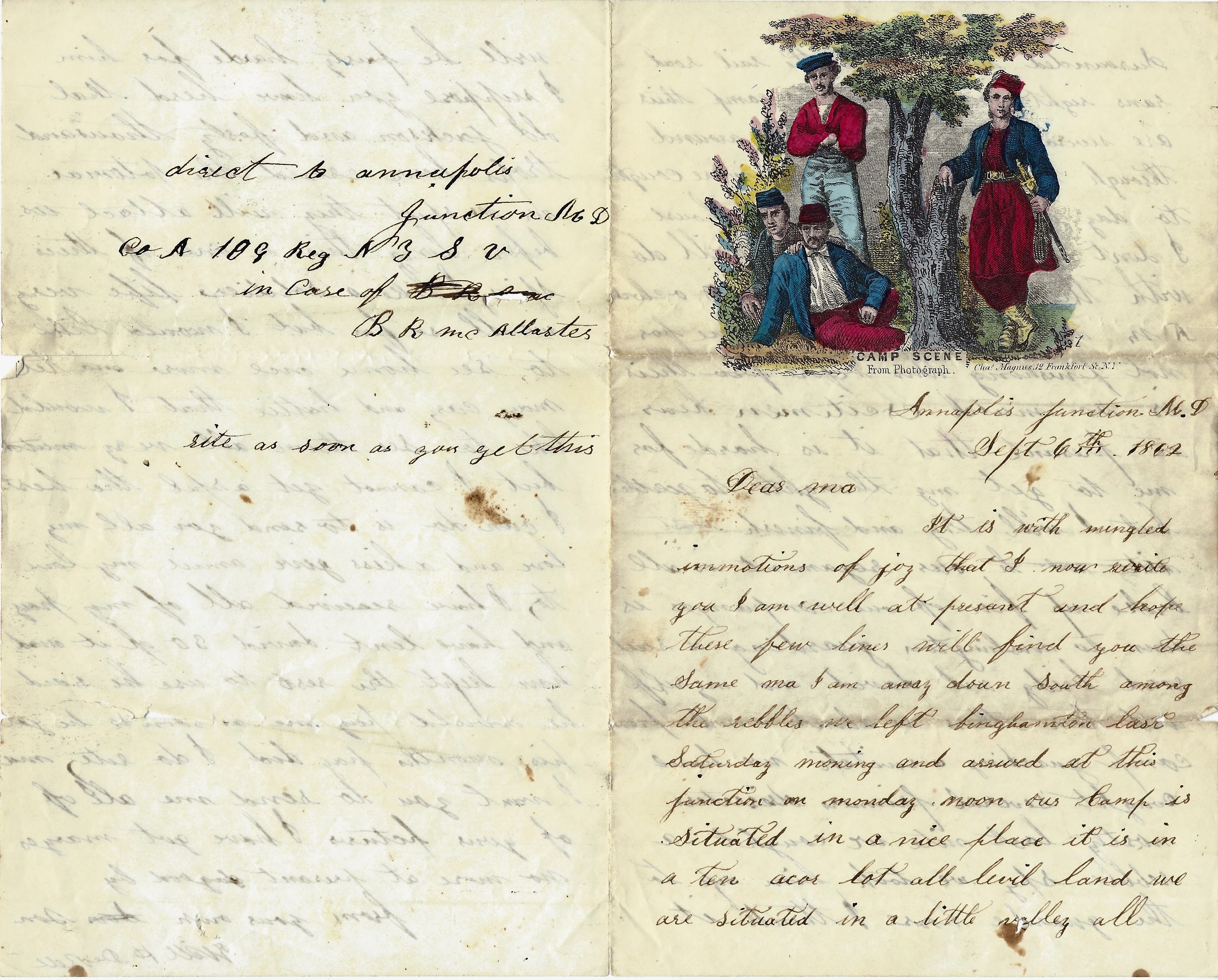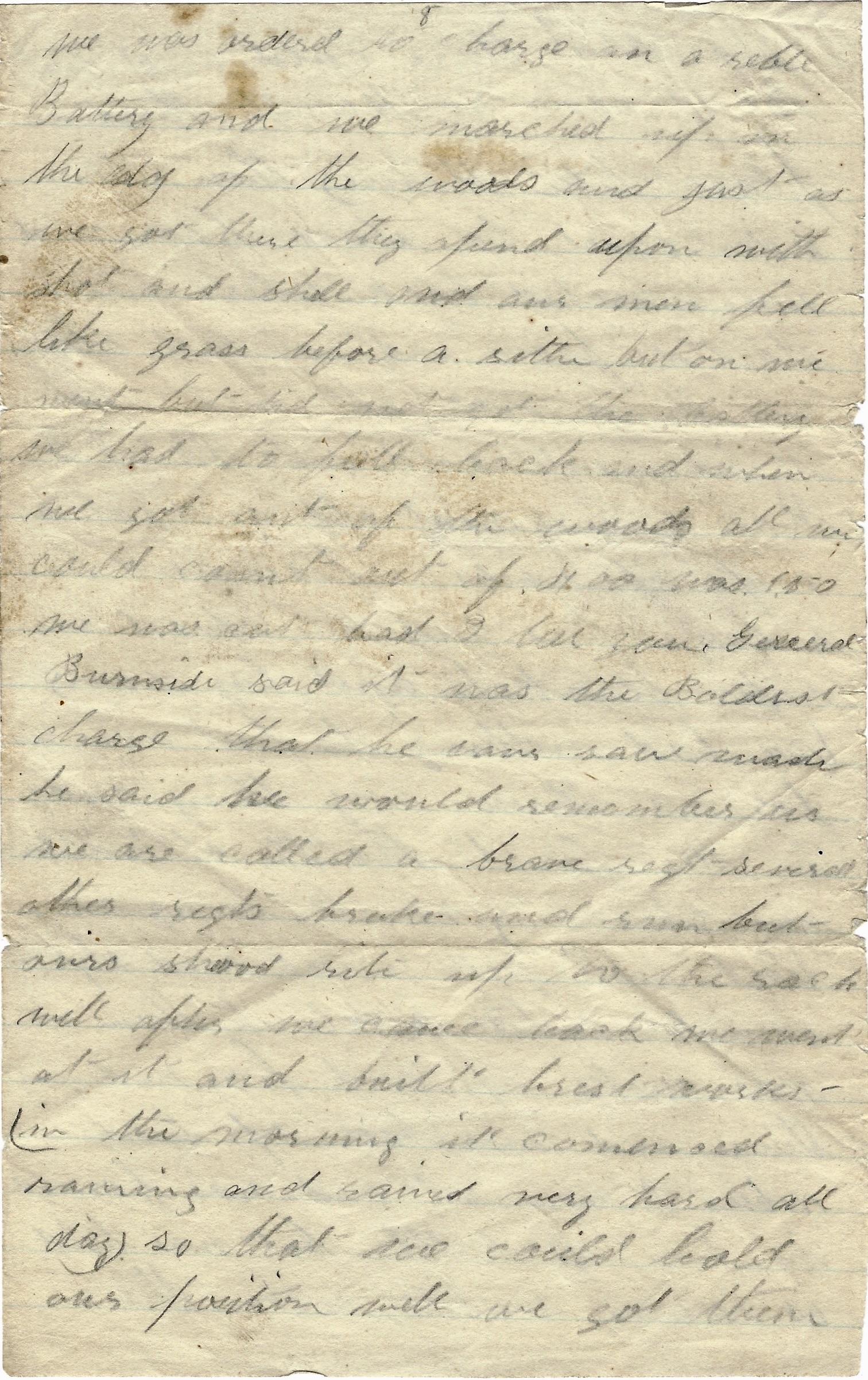 When we left New York Harbor, I was put into the 6th New York Heavy Artillery and sent right into the field and have had to march and fight ever since, night and day, so you see that I could not even get a chance to write to my own home as often as would have done. But for the past two weeks, I have been detailed to help drive cattle & butcher so I can have a little better chance to write once in a while.