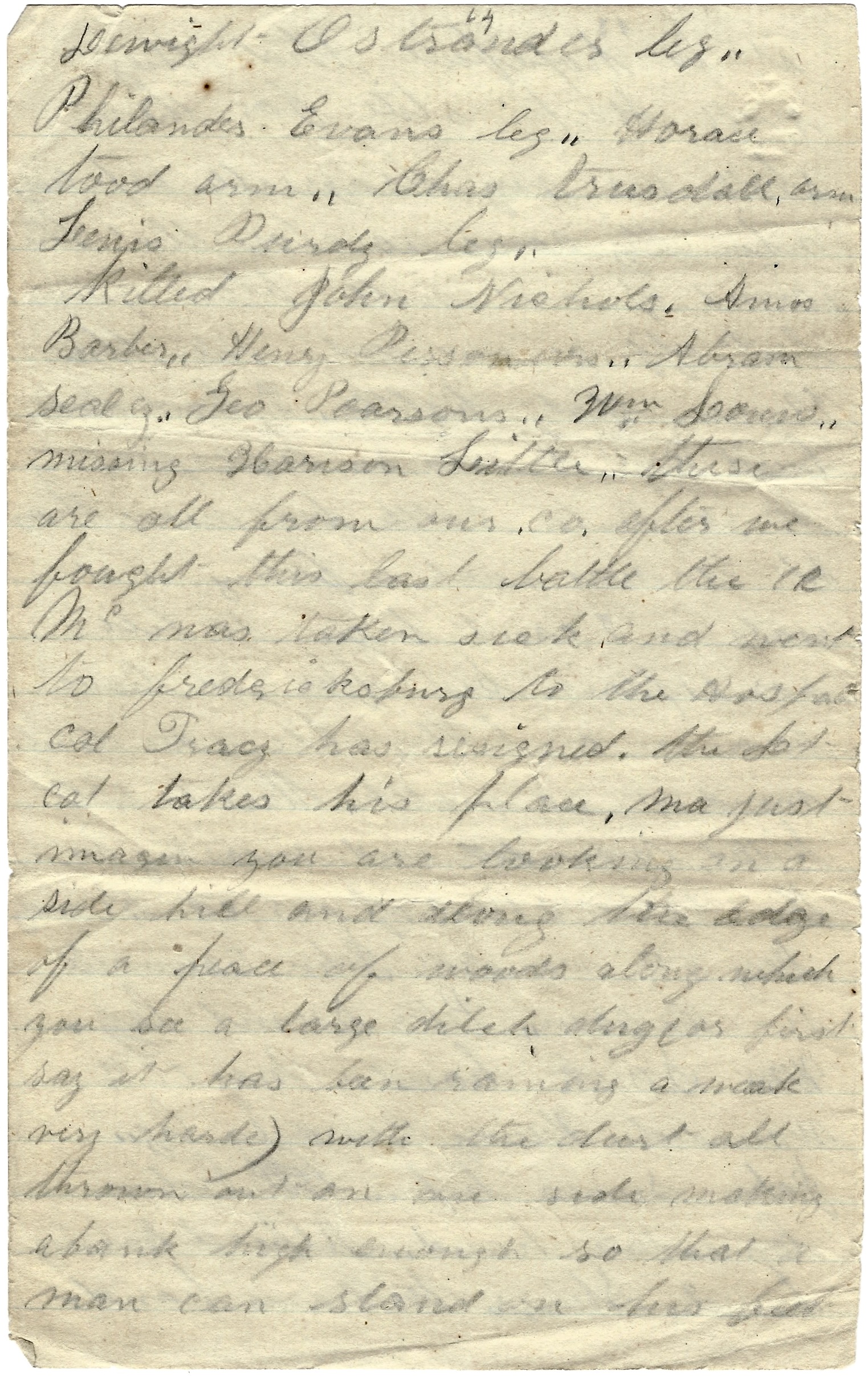 Mother, you seem to think in your letter that I am wounded but I don’t know what makes you think so. I haven’t been touched yet so far more than got my dry goods cut a little. But they may cut them if they let me slip. Davy Mires [Myers?] is at Hampton Hospital. His head is pretty sore. I got a letter from him the other day.