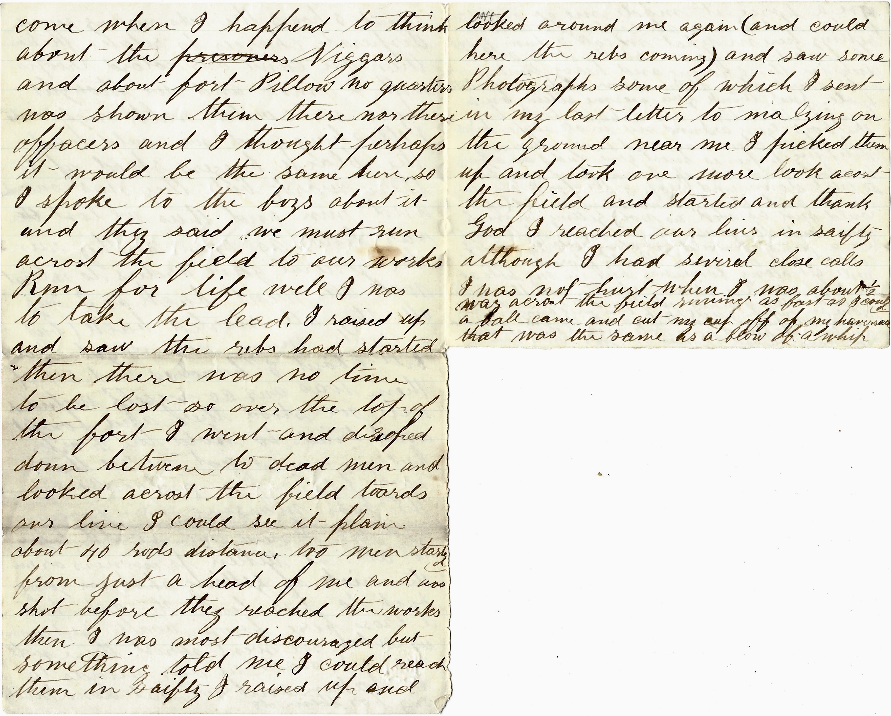 We are within one mile of Petersburg and in the rear of Fort Petersburg. We can see the steeples at Petersburg and the buildings that they have got our prisoners in. John, you ought to see the guns that they have got mounted on this fort. They look huge, I tell you. They say they could throw a shell into Petersburg with them. I don’t doubt it for they look as though they was capable of doing. The pickets are a firing all the while at each other. I could hear them plain enough when I was at the Point and most too plain here. I would rather [ ] to the rear if they would let me,