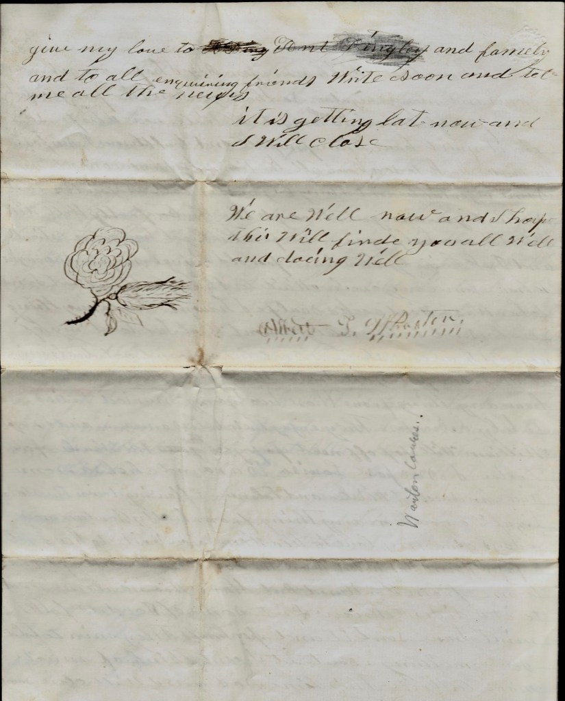We are encamped 8 miles above New Orleans to a place by the name of Carrollton on the banks of the Mississippi River and I am enjoying myself first rate. I have been to work all day making a floor to our tent and it is as warm here as it is in Massachusetts in June. You spoke about giving my love to Mr. F in your letter. He has not got here yet nor he ain’t likely to get here for a month.