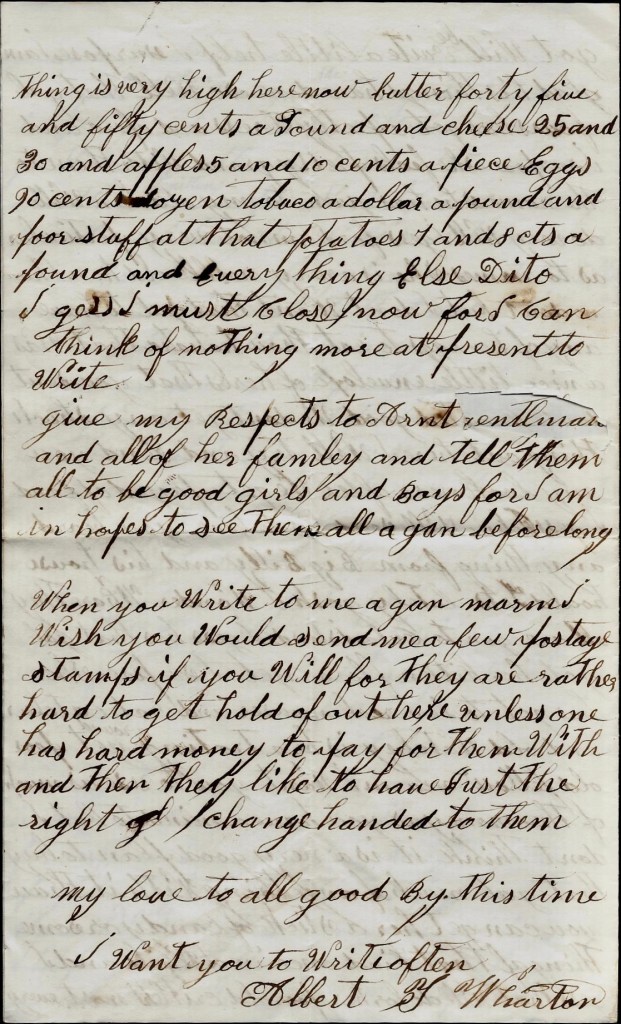 P. S. When you write me a letter, write me a list of what you sent by Charles Tenney. Give my love to Esther and all the rest. Postage stamps are played out with us.