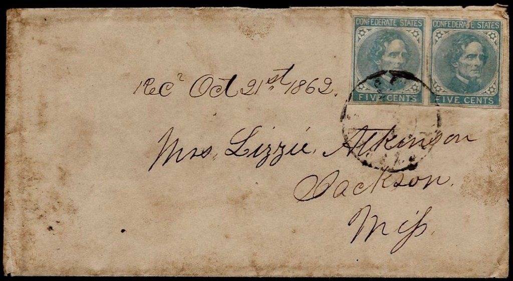 Addressed to Mrs. Lizzie Atkinson, Jackson, Mississippi