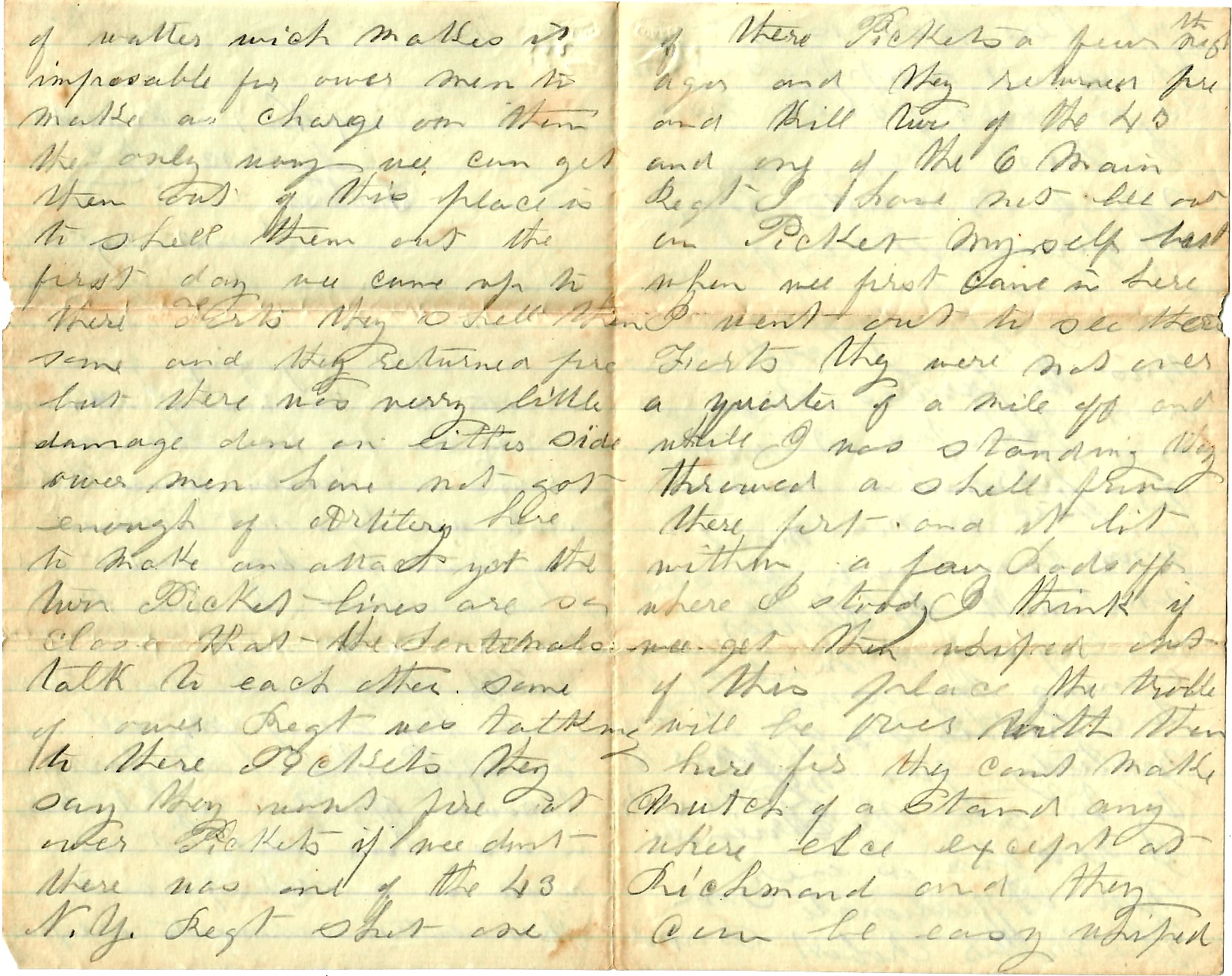 Our regiment has been in a battle. 1 They made the Yankees go back. The last time that I heard, they were in the line of battle [and] they were throwing bob shells at one another everyday at Yorktown. Our regiment is at Yorktown. you may direct your letters to Yorktown.