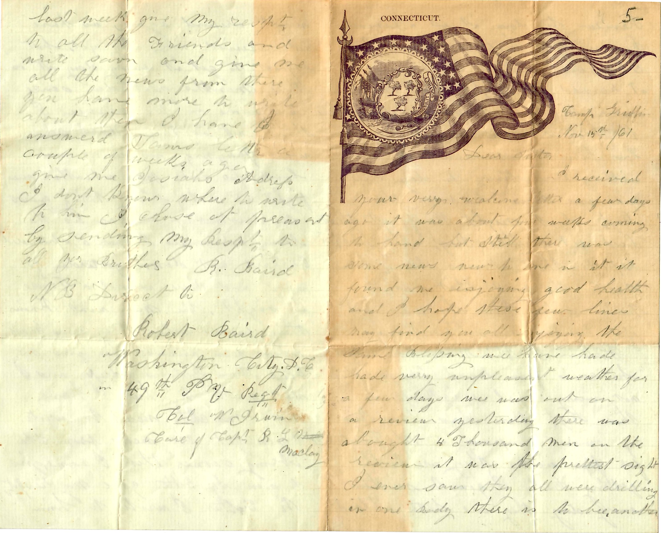 N. B. If there is anything sent to me, direct to the 49th Regt. P. V., Col. Irwin, commander in care of Capt. R[alph] T. Maclay