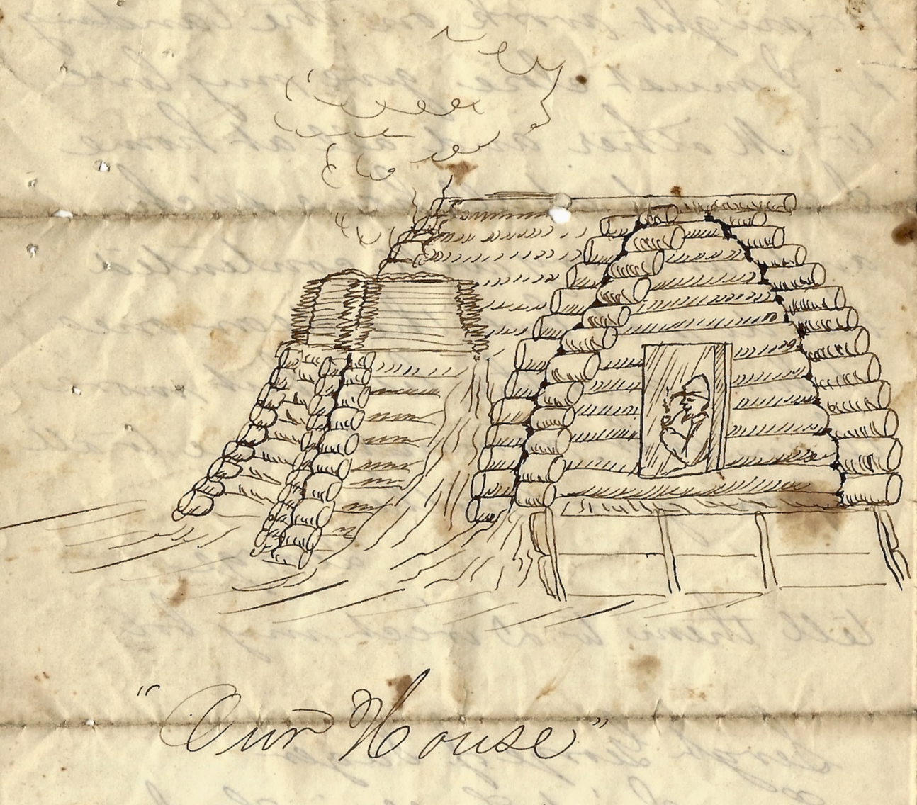 Mort [Mortimer] Birdseye, Lisher [Elisha] George & I have got a nice little log house with a good fireplace and bunkhouse just built by some old soldiers who had to leave here and although it is a cold, snowy, rainy, and disagreeable day out doors, we are comfortable within. Mort is washing dishes and preparing a beef stew. Lisher is reading a book and I am writing of course. I wish you could lift up the canvas we have for a door and look in on us. You would be satisfied.