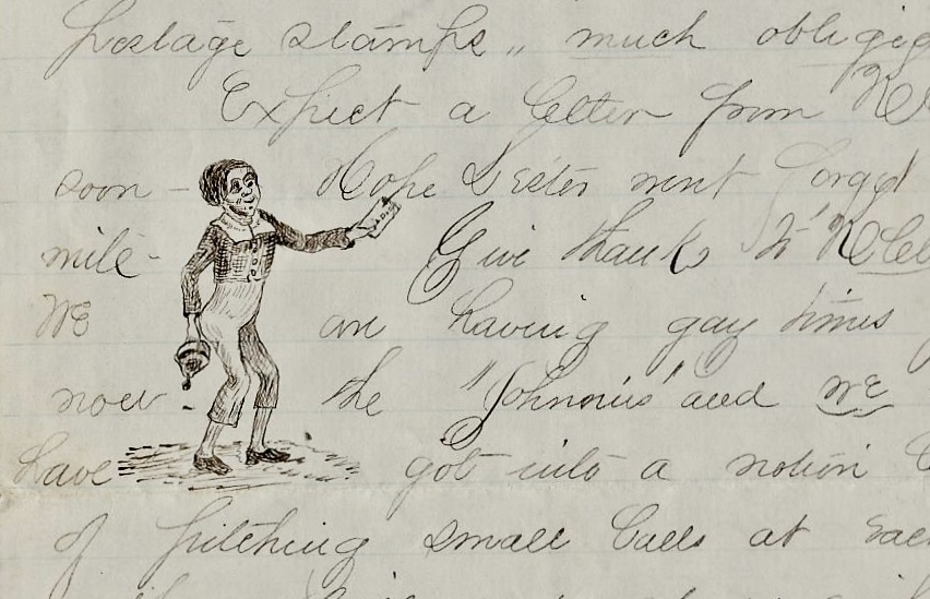 Doty’s letter incorporates a sketch of a boy delivering the mail. He was most likely a runaway Negro boy (“contraband”) who attached himself to the regiment, performing services in return for shelter, food and clothing. He holds his hat in hand while extending a letter in the other.