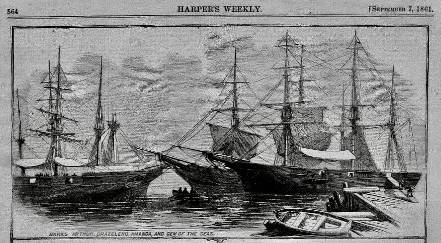 Bark Gem of the Sea being fitted out for naval service at New York Navy Yard in 1861