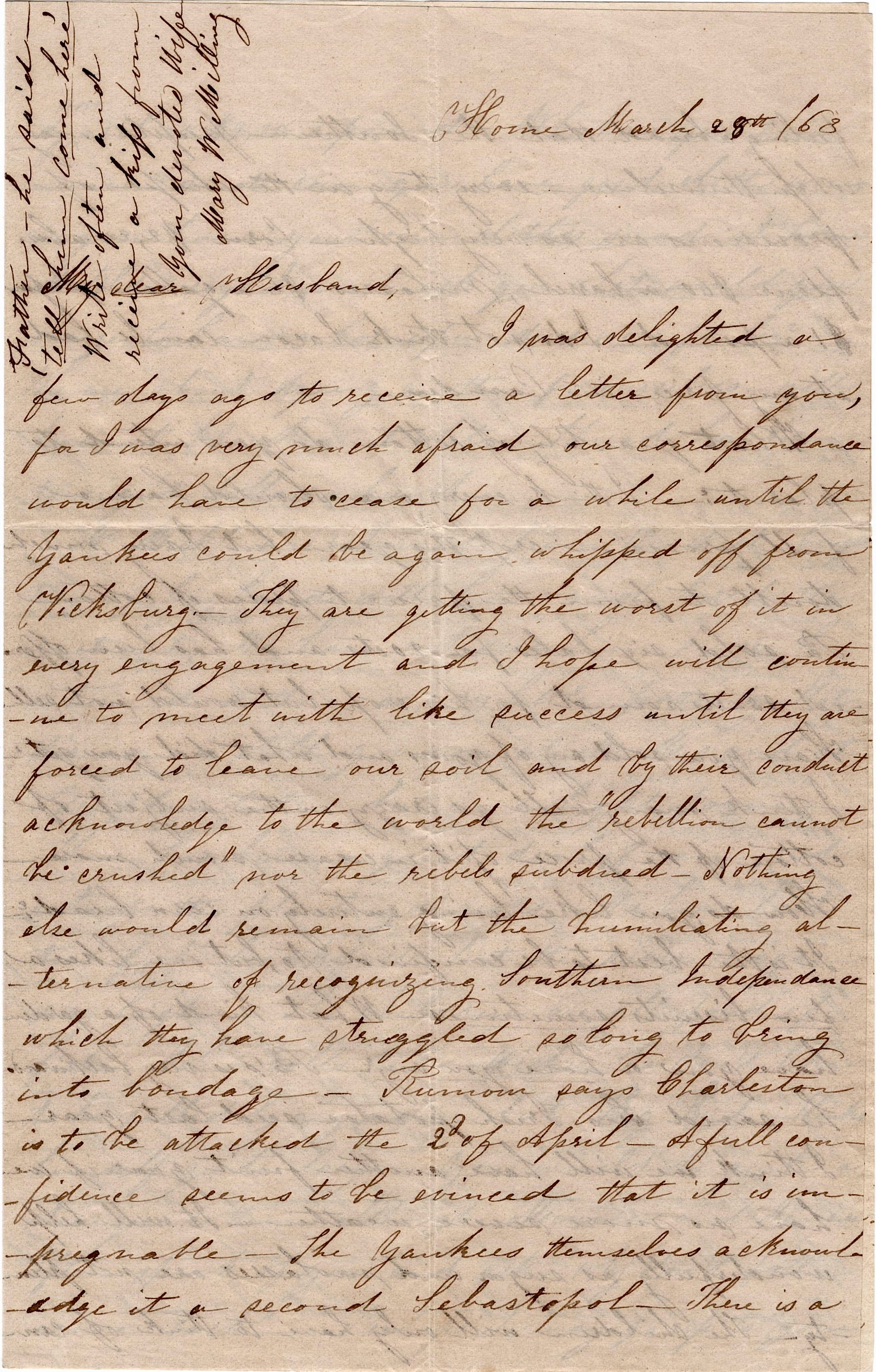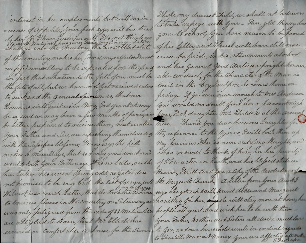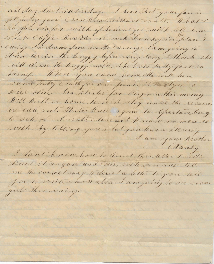 Wheeler has this moment brought in a letter from N. W. Garlington to the Major. Also [John T.] Wightman’s discourse in Yorkville [S. Carolina] on the day of National Thanksgiving. But I will go on with this hasty note.