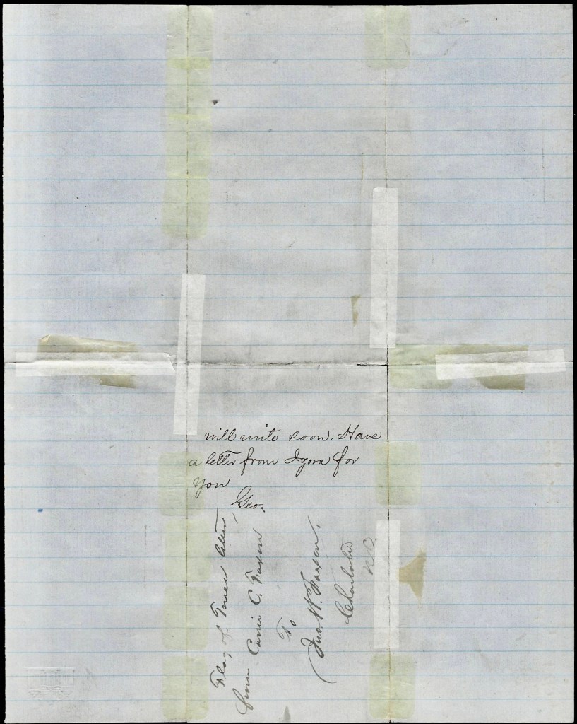 Seven of Mr. Morrow’s negroes gone, his fencing nearly all burned up, and some of ours all next the road. Dr. [Alexander] Brabson 4 ruined. They day our folks retreated from Blue Springs, I never heard such shooting in my life. Our folks made a master retreat, crossed the long bridge just at dark. I never want to hear the like again. I got so used to cannons and guns that I did not mind it much. Five southern men run a thousand Yanks. They owned themselves that the rebs were the best fighters. I could write you a week of our troubles here but have not got space and paper is scarce in these diggings.