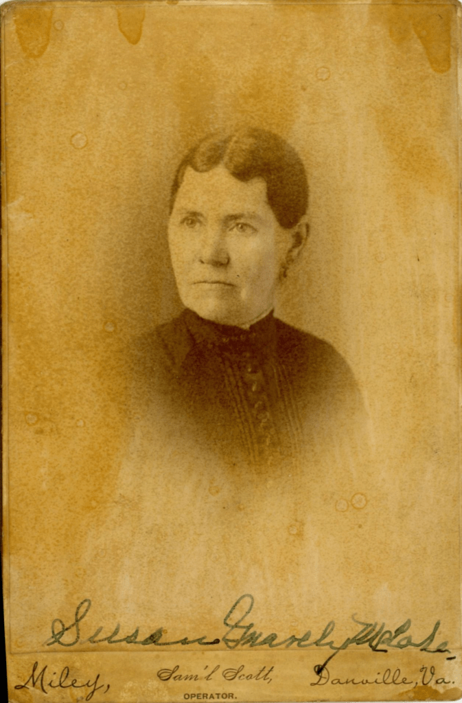 Dr. Lipscomb is a sergeant in the navy at Charleston. What do you think of that? I would not like to take medicine from him. William Henry is still in the army. I suppose you got the buttons for your wedding gown when in Farmville. If you will have it made like I want it, it will certainly be nice and pretty and will cost only $100 now. So you had better get the materials now if you expect to sew soon. I would certainly get me one like it now if I could. I never seen one made so but sister and I took of a notion, it would be pretty. If I had one hundred dollars, I think I would spend it for a gown. I will certainly have yours made when you get ready—that is, if you think Sallie can make it nice enough. Be sure to tell Mollie [Susie’s sister Mollie] to send the pattern of her handkerchief the next time you write and any others that she has. I can’t think of anything else to write, so must close. You must write soon. Don’t do as you did before, and write a long letter. This neighborhood is so dull. I never hear anything worth writing. Be sure to burn this. My best love to all and accept for yourself the most of it. Your true friend, — Mollie
