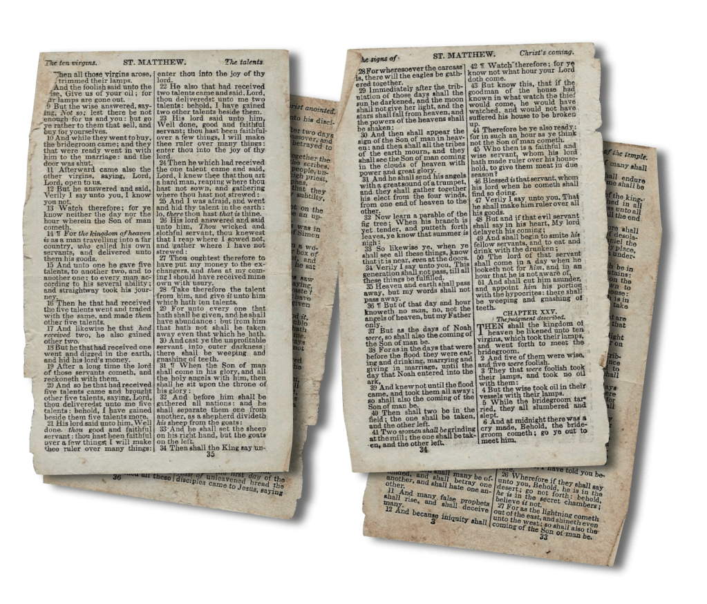 If this envelope ever carried a letter in it, the letter is long gone but it may have been sent solely for the purpose of transmitting the two pages ripped from the gospel of St. Matthew in the New Testament which were “picked up at Manassas April 1, 1862”—perhaps as a relic of the Battle of Bull Run.