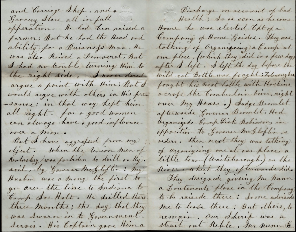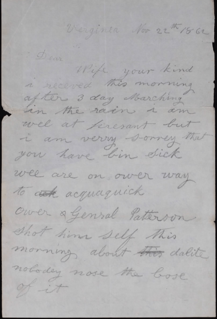Dear wife, you speak about Fanny the dog. I suppose he thought he would see me for I ought to have been there at the same time because I had a furlough for one week and couldn’t get no further than Washington. There I had to stop on account of having no money. There I remained a week till it was time for me to go to camp.
