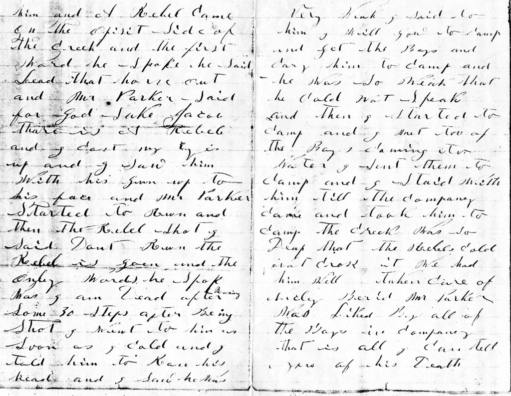 I am very glad you seen Capt. O’Murphy. I suppose he told you all about the [Second] Bull Run fight. Give my respects to Fred and Frank. Tell them that I am well. Also to Mrs. and Mr. Wallis [Wallace?] and to Mrs. Laws. I don’t hear anything about the regiment that James is in at all.