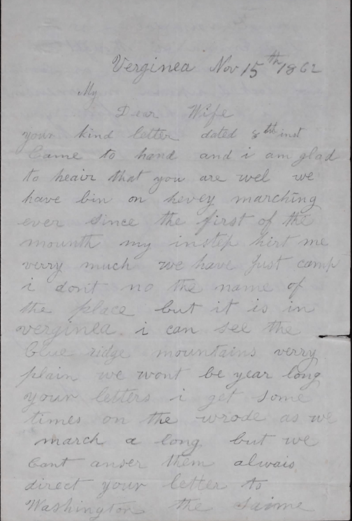 We are under marching orders and we don’t know how long we will be here but I hope they will countermand them for I don’t care about going to fight anymore this winter. I would like to stay here or somewhere about the neighborhood this winter.
