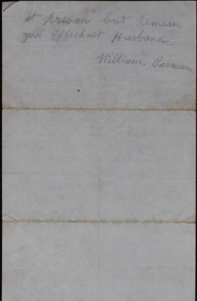 I have no more to say to you at present but I remain your affectionate husband until death, — William Carman