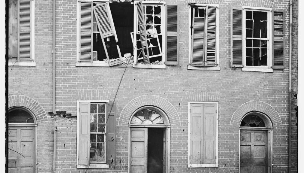Heard from Mr. B that the Liby Building had been struck several times & much damaged. Walked down there with Charley to look at it. Found that a shell had passed through the roof and come out on the west side. Several houses on Bollingbrook [Street] appeared to have been recently struck. Very few people on the street. A group at Bolling’s corner—mostly military men. Looks like a deserted city. The people move away by a sort of contagious instinct of danger. The pond is drying up & the frogs are going away croaking. A few frogs remain. One white woman has been killed & a soldier & two negro men and one woman by the shells & several wounded. This is the result thus far & consequently there seems to be no sufficient ground for this great panic and stampede.