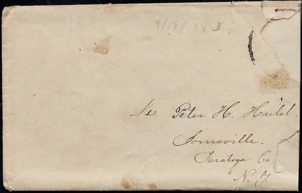 Addressed to Mr. Peter H. Hulet, Jonesville, Saratoga county, New York