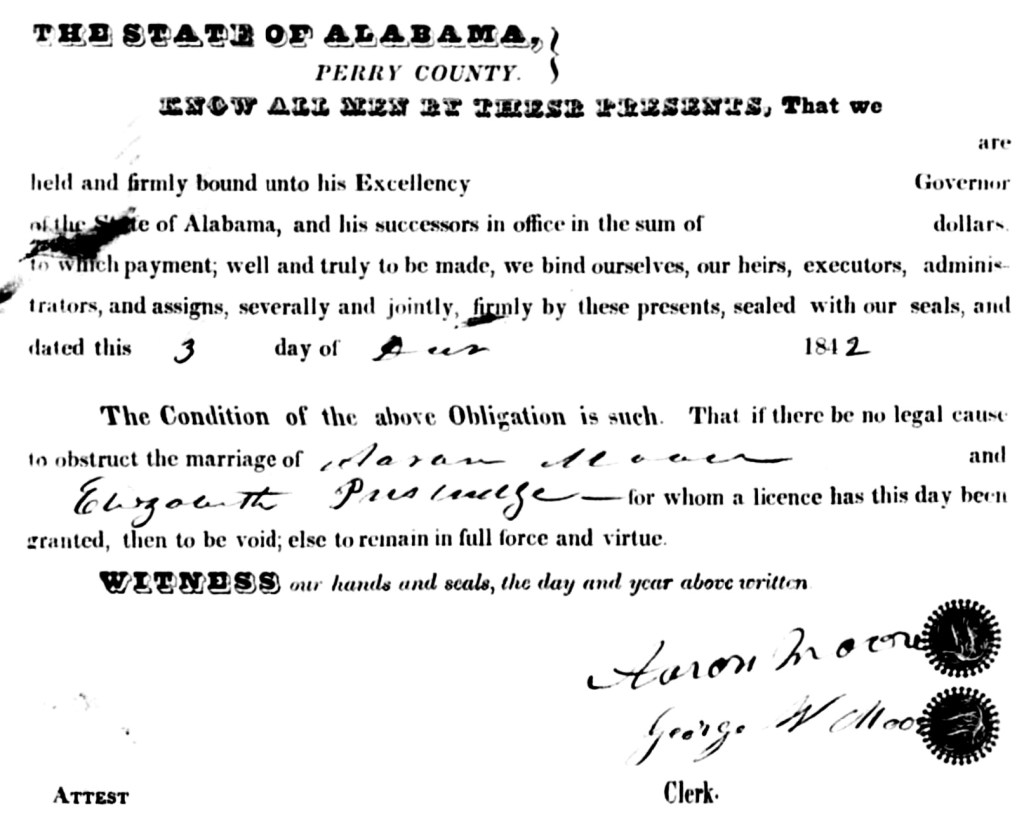 Marriage Record in Perry County, Alabama, dated 3 December 1842.