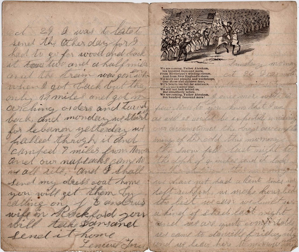 As Longstreet’s Division charged upon copse of trees, our line fell back and my Brigade was sent up double quick to close the gap and check further advance. We got into the gap in a huddled mass and as we stood there firing upon the enemy who were now secure behind the wall and cutting us down fast with their flag planted on the wall, Jim Tenny [of Co. B] said to Cunningham, let us charge on them; they cut us all down if we stand here. Then Cunningham called out, “For God’s sake, let us charge on boys!” and we acted on the suggestion at once and as we neared the wall, the rebs broke and run. I was by the side of [Sgt. William Henry] Savage of Co. A when he fell and saw no one else near but in the excitement and smoke it is probable that many were all around near us—at least it is not probable Savage and I were alone or ahead in the charge which was done by at least a very few hundred men.